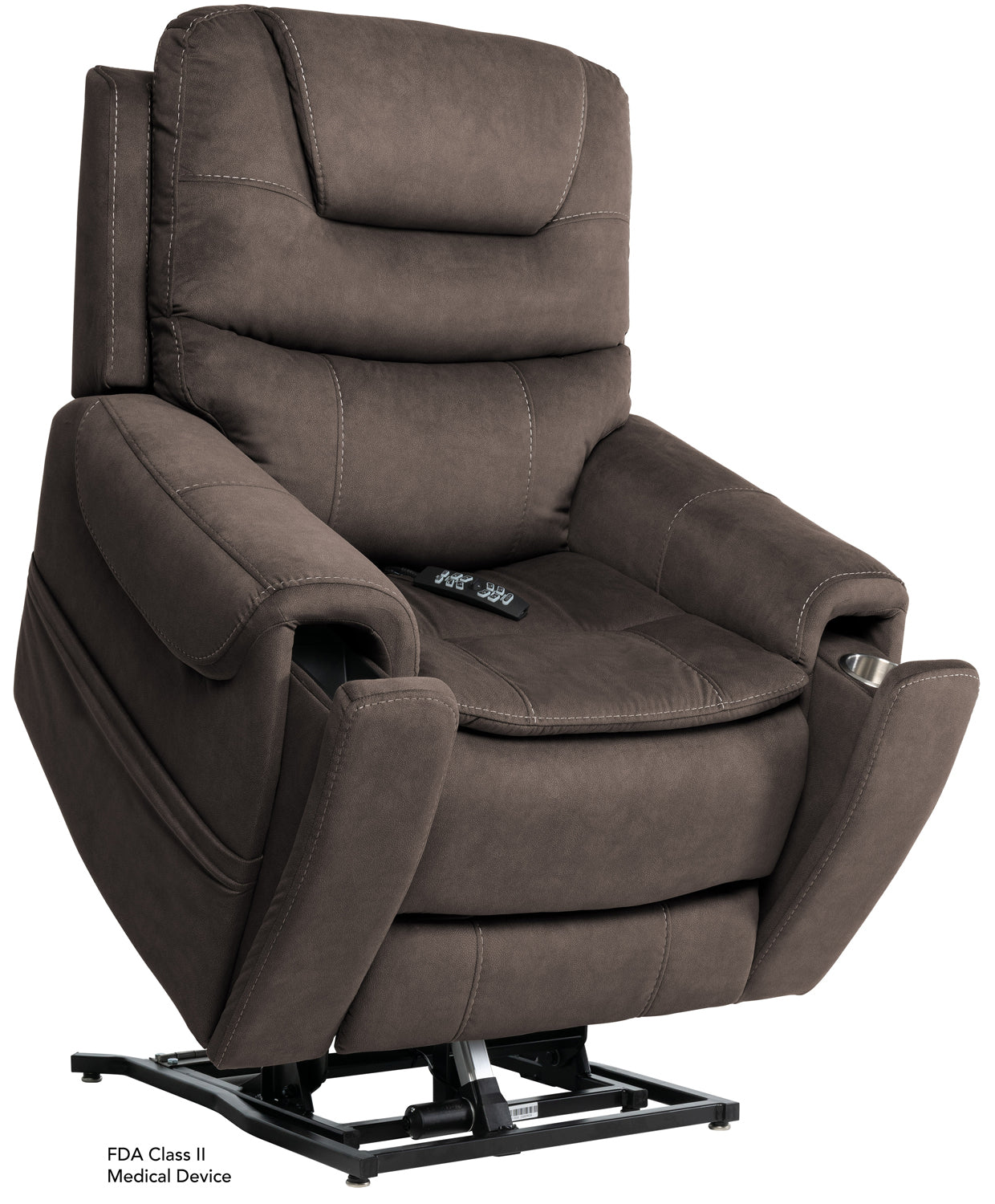 • Both arm panels pull out one holds a pull-out cup holder and the other a pull-out wireless charger Chaise pad construction – head to toecomfort and support Standard glide-extension footrest Furniture grade hardwood/plywood construction Heavy duty steel lift mechanism Lithium battery backup pack ensures your recliner is operational when the power goes out