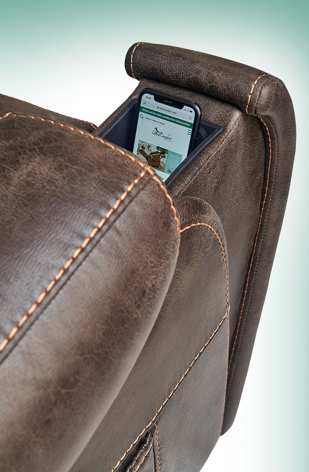 Modern lifestyle features are built right in — including a wireless smartphone charger, USB charging port, removable tray table, reading light, and built-in cup holder — all within the convenient front-load, open-arm design. With its seamless mix of technology and relaxation, the Sedona helps you recharge in comfort every day.