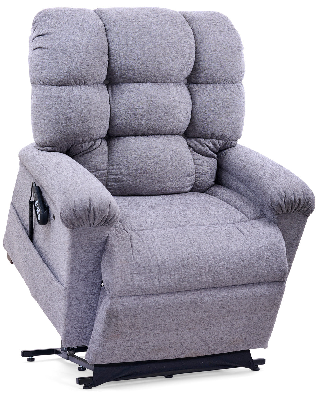 This 600 lb. weight capacity, medium-wide lift recliner offers a traditional style with an overstuffed biscuit-back design and plush chaise pad for comfort you can sink into. Take your seating experience even further with our exclusive bucket seat engineered to hug your hips and promote better posture while relaxing.